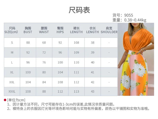 Women Print Suit Pullover Batwing Sleeve V-Neck Top Wide Leg Pants Set Two Piece Set New Loose Casual Women's Clothing Summer