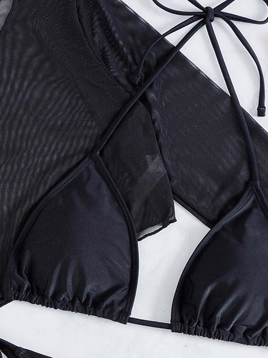 Halter Bikini Set Solid 3 Piece Swimsuit Women Long Sleeve Swimwear