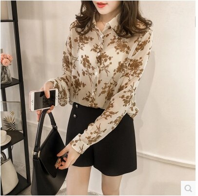 Chiffon Blouse Shirt Long Sleeve Print