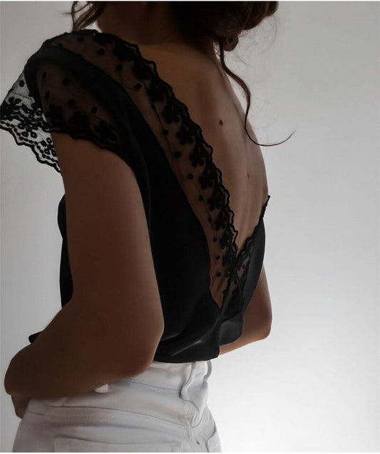 Short Sleeve Lace Tops V Neck Harajuku Blouse