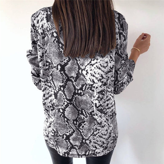 Snake Skin Printed Shirts Women Kimono Tops Blouse