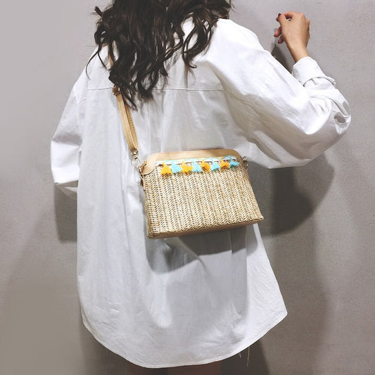 Handmade Woven PU Leather Boho Female Summer Beach Holiday Bohemia Shoulder Bags