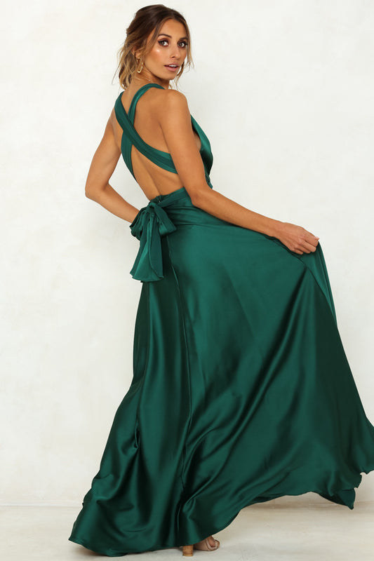 Spring and Summer Solid Color Lace-up V-neck Sexy Women Clothing Backless High Waist Dress Long Dress Maxi