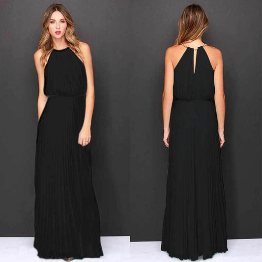 Halter Solid Color Chiffon Sleeveless Dress Dress Long Dress