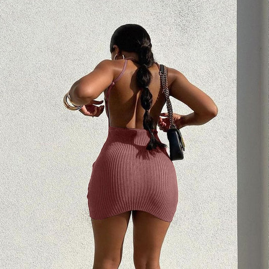 Ribbed Knitted Stripe Women Strap Mini Dress
