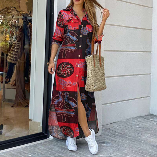 V Neck Vintage Print Long Boho Beach Maxi Dress