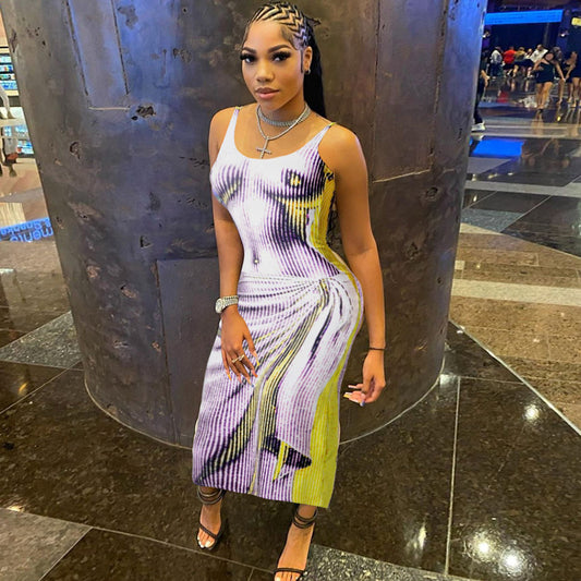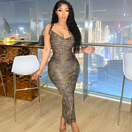 Women Clothing Summer Printed Slim Fit Backless Sexy Dress