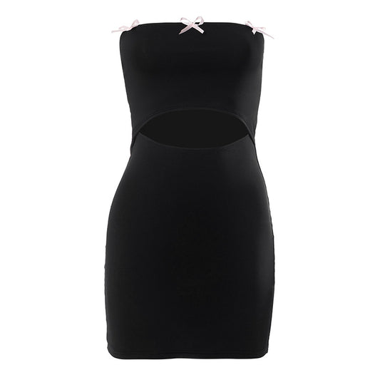 Sexy Bow Decoration Hollow Out Cutout Out Tube Top Dress Women Summer