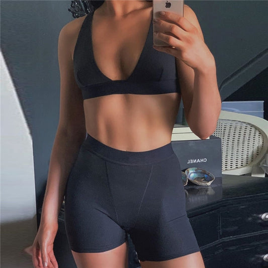 Sexy Sports Ribbed Knitted 2 Pc Set for Women