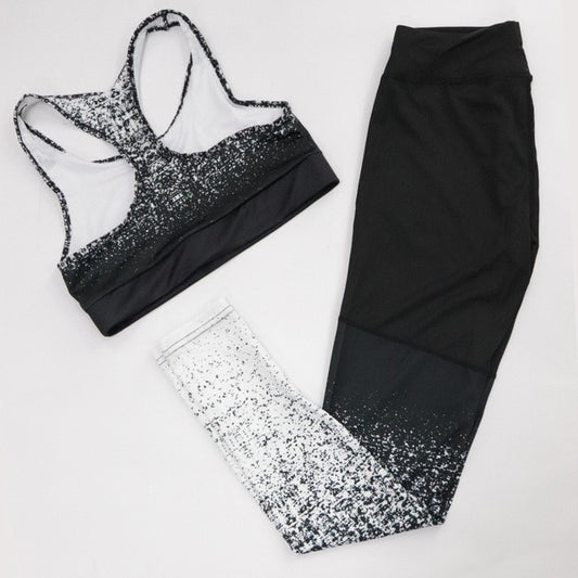 Gradient Print Leggings & Bra ombre Stretchy Running Gym Suits