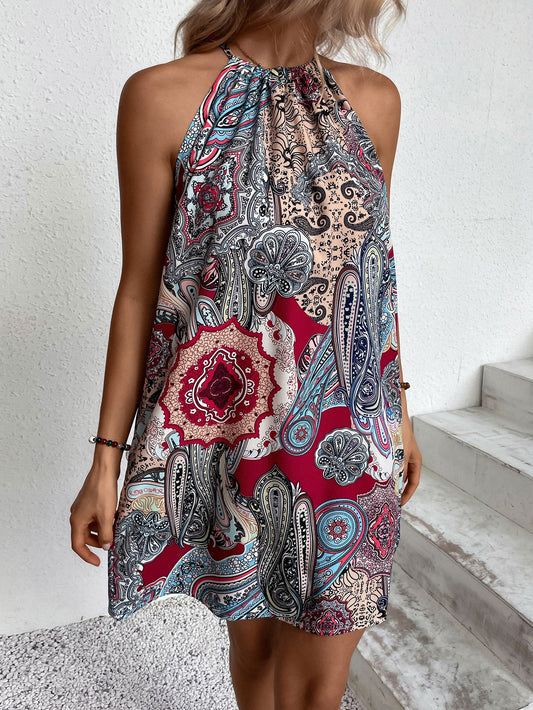 Summer Sexy Halter Positioning Print Holiday Beach Dress