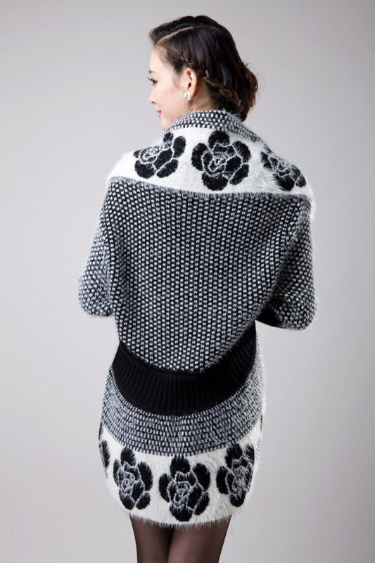 Back Long Knitted Printed Shawl Open Stitch Jacquard Sweater