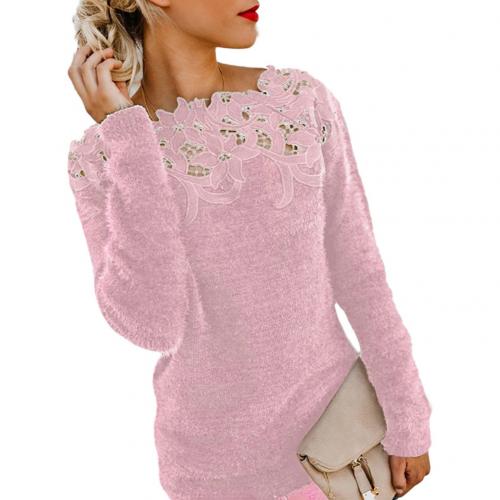 Turtleneck Sweater Casual Soft O-neck Jumper Fashion Slim Lace Hollow Out Long Sleeves Clothes