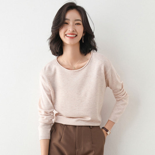 Super Soft And Comfortable Self-Cultivation Solid Color O Neck Pullover Women's Sweater