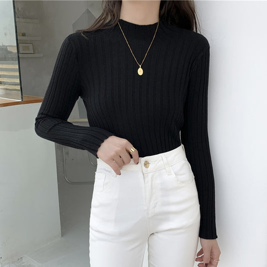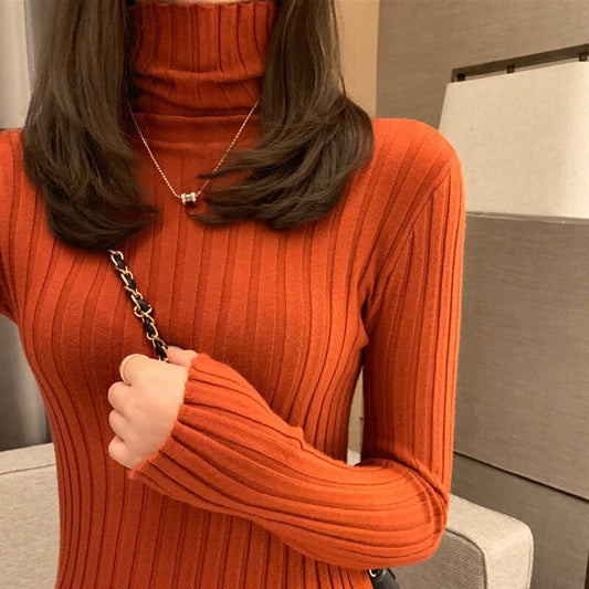 Soft Slim Elastic Knitted Jumper Fashion Long Sleeve Turtleneck Pullover Sweater