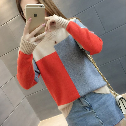 Round neck Knitted Tops Female Long Sleeve Jumper