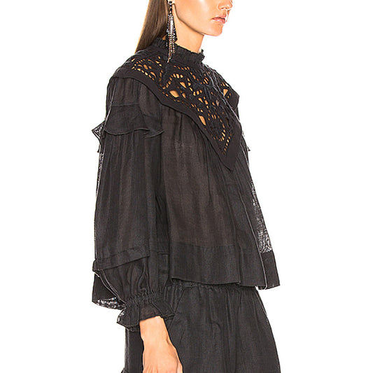 Glamaker Sexy Hollow Out Women Blouse Ladies Top Female Elegant Long Lantern Sleeve Shirt Autumn Winter Black Blouse Shirt Top