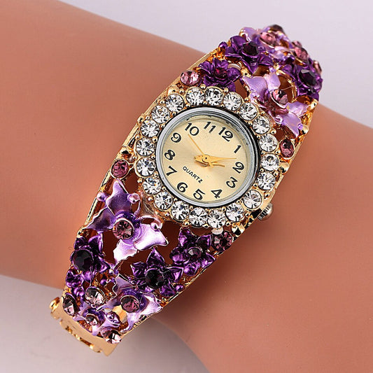 Rose Gold Flower Dial Clock Women Quartz Wrist Watches Box Set