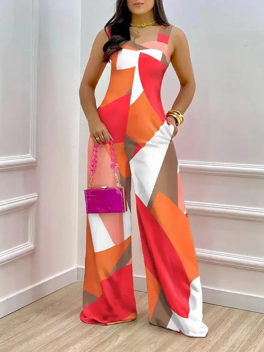Summer Print Elegnat Women's Jumpsuits Fashion Spaghetti Strap Loose Boho Wide Leg Playsuit Casual Female Wide Leg Jumpsuit