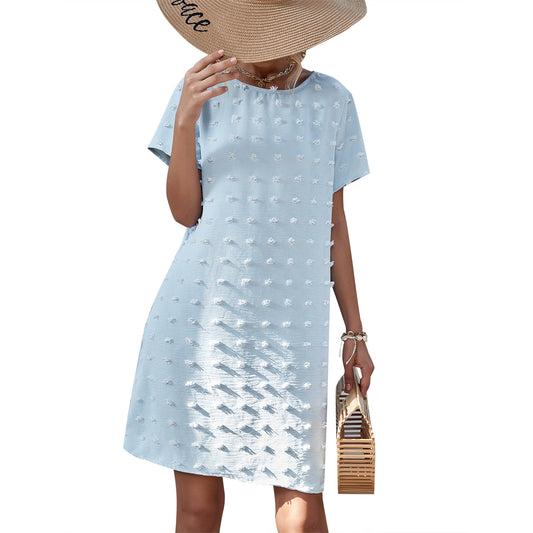Women Clothing Casual Elegant Fur Ball Embroidered Chiffon Comfortable Dress Fashion