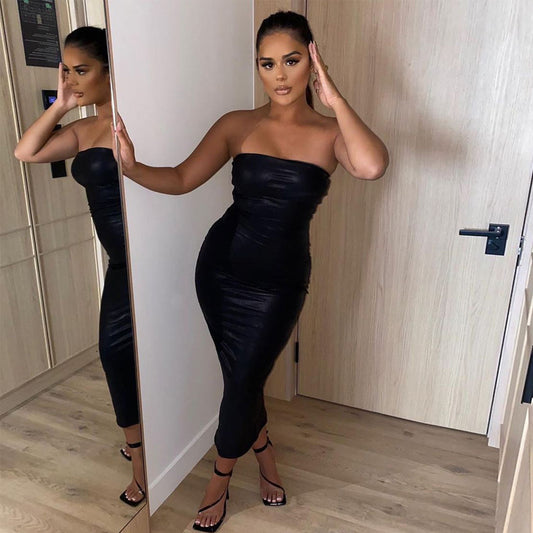 Women Clothing 2021 New Winter Sexy Bandeau Slim-Fit Slimming Slit Dress Female