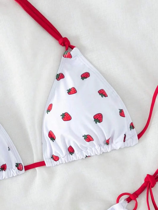 Sexy women cute strawberry print halter string micro bikini sets two pieces swimsuit Swimwear bathing suit beach outfits biquini