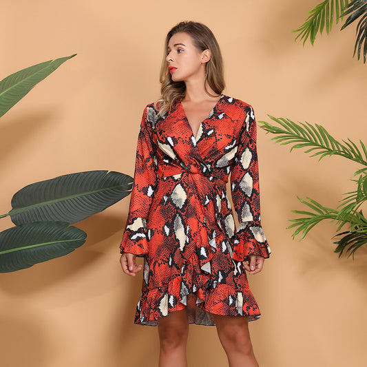 Women Clothes Autumn Winter Dress New Autumn Women Clothing Long Sleeve Snake Pattern Printed Dress