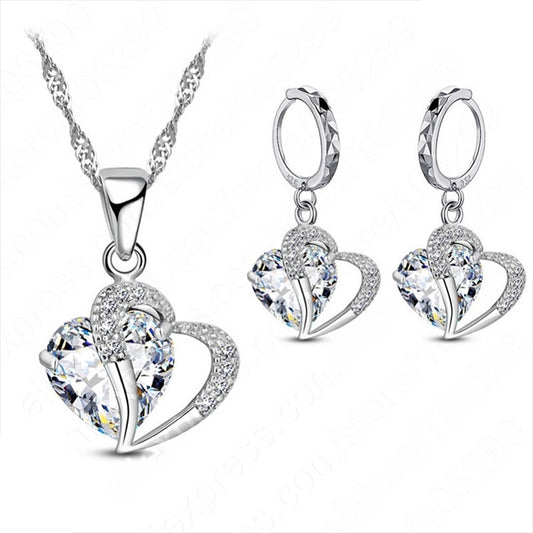 Luxury Women 925 Sterling Silver Cubic Zircon Necklace Pendant Earrings Sets Cartilage Piercing Jewelry Wedding Heart Design
