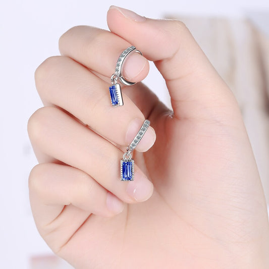 925 Sterling Silver Simple Blue Crystal Zircon Mid-length Tassel Earrings