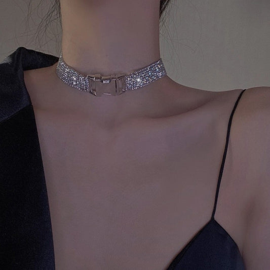 FYUAN Shine Rhinestone Choker Necklaces for Women Bijoux Silver Color Button Necklaces Statement Jewelry