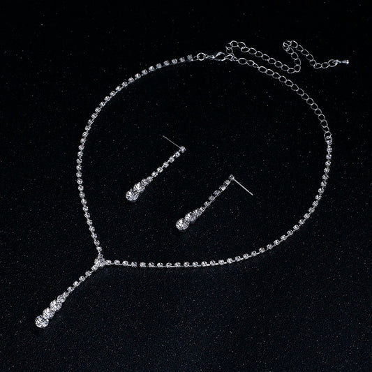 TREAZY Simple V Shape Teardrop Bridal Bridesmaid Jewelry Sets Crystal Fashion Wedding Jewelry Necklace Earrings Set for Women
