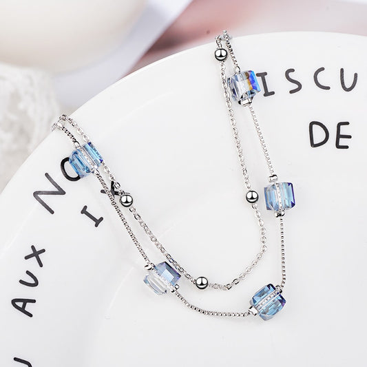 Square Blue Crystal 925 Sterling Silver Lady Bracelet