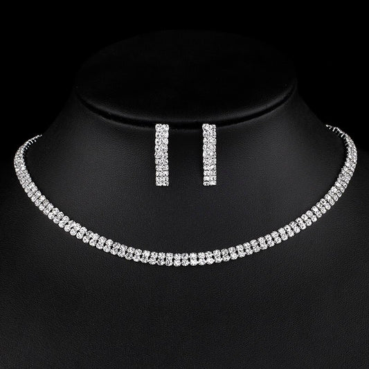TREAZY Simple Crystal Bridal Jewelry Sets Silver Color Choker Necklace Earrings Sets for Women Wedding African Jewelry Sets