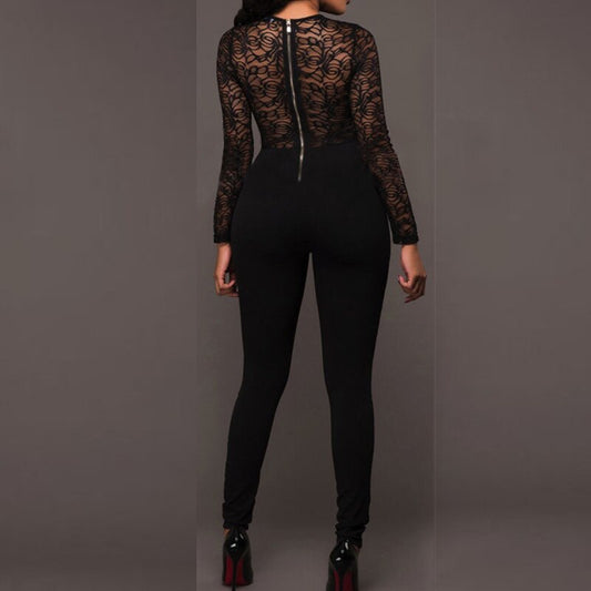 Long Sleeve Lace Hollow Out Jumpsuit Sexy Slim Lace Floral Bodycon Rompers