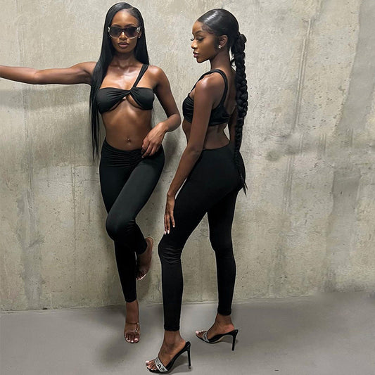 Women Clothing Women Clothing Sexy Oblique Shoulder Tank Top Tight Pants Casual Suit