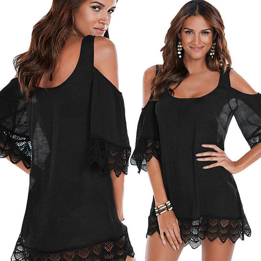 T-shirt Swimsuit Women Sexy Mesh Sheer Bikini Cover Up Swimwear Bathing Suit See Through Short Sleeve Tops Summer Beach Dress