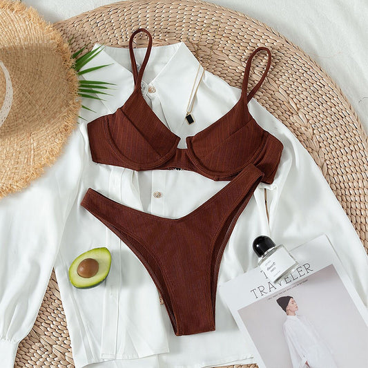 Push Up Bikini Solid Swimsuit
