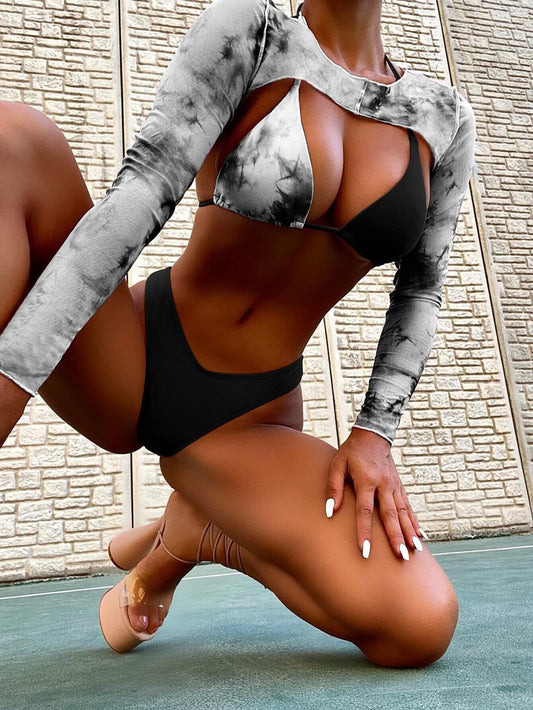 Triangle Micro Bikinis 3 Piece Swimsuit Women Print Bathing Suits Swimwear