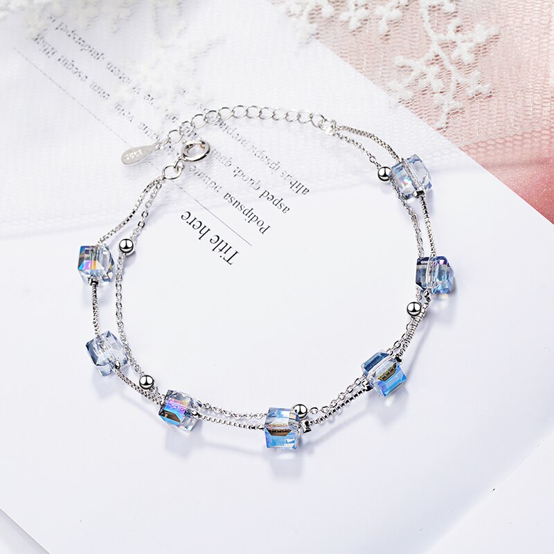 Square Blue Crystal 925 Sterling Silver Lady Bracelet
