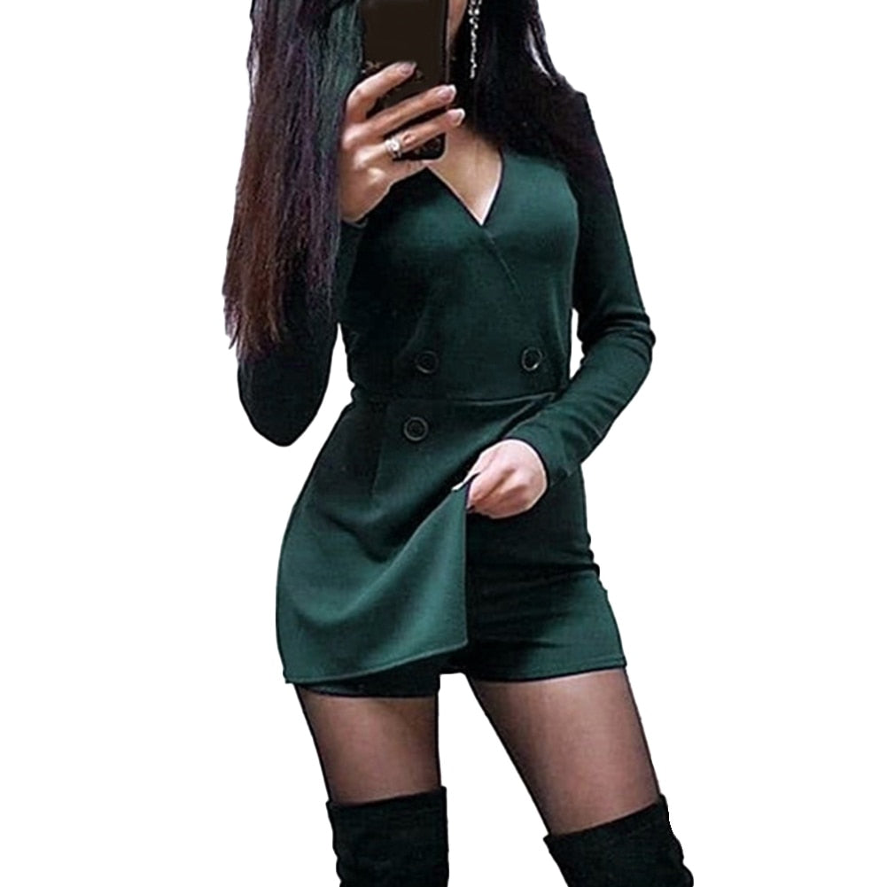 Solid Color Long Sleeve V Neck Double-breasted Short Playsuit Jumpsuit Women's