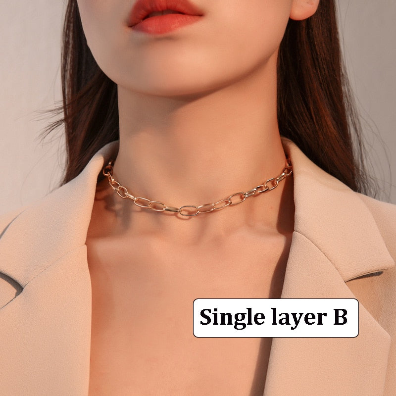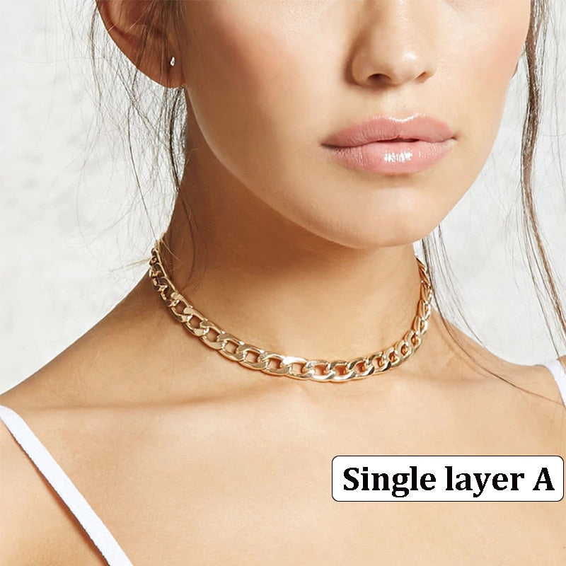 Fashion Multilayer Golden Chain Necklace Ladies Collar Sweater Metal Choker Necklace