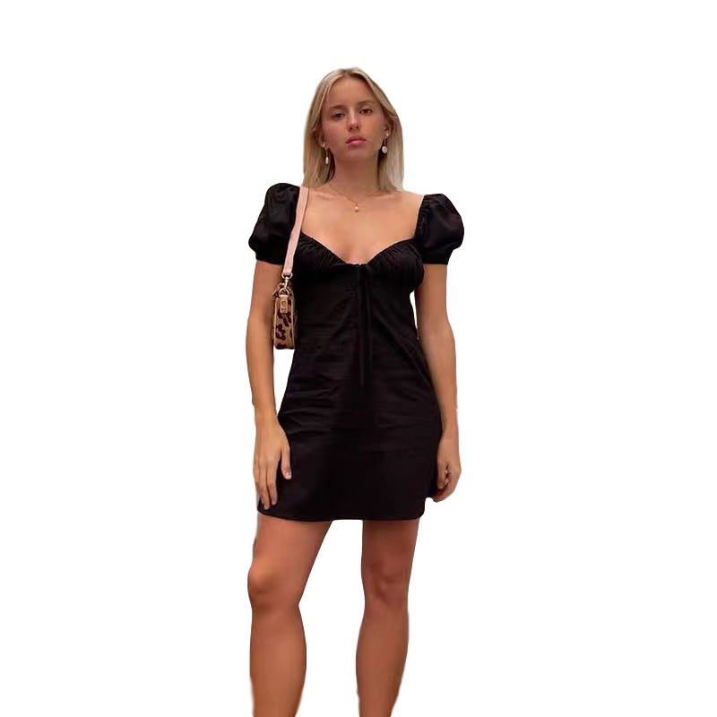Fashion Summer Casual Women New Short Sleeve V-neck Backless Slim Fit Dress Short Skirt
