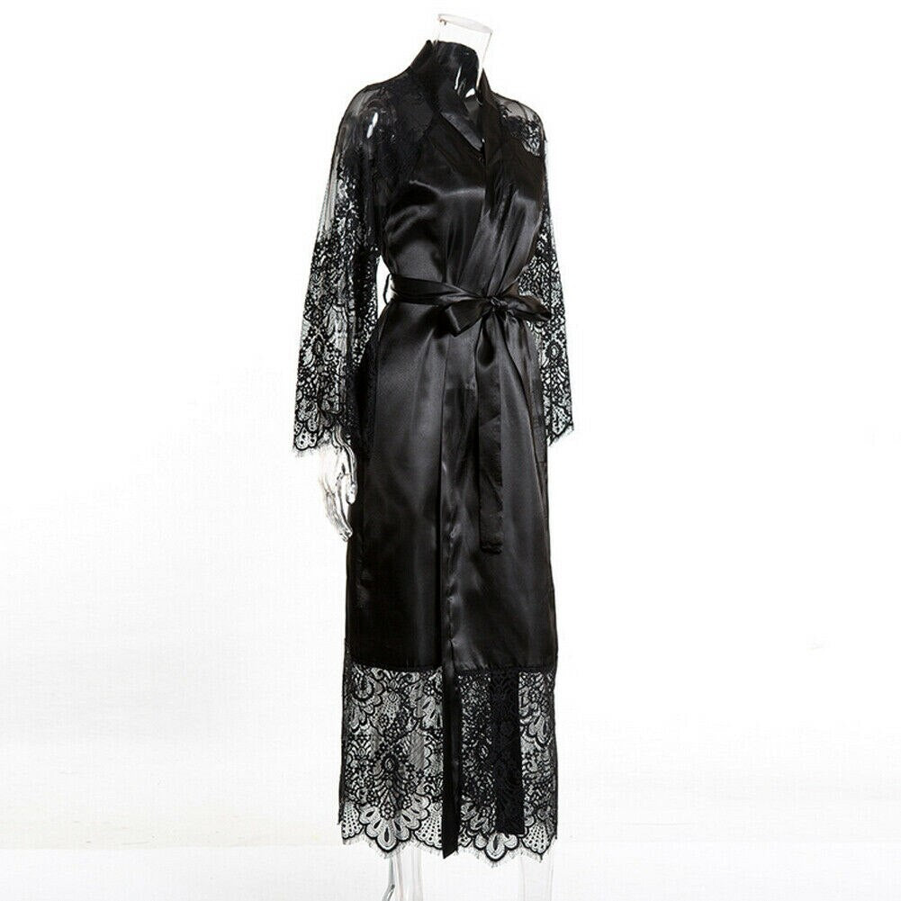 New Women Ladies Silk Satin Robes Bridal Wedding Bridesmaid Bride Dressing Gown Kimono Robe Black White Red