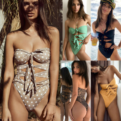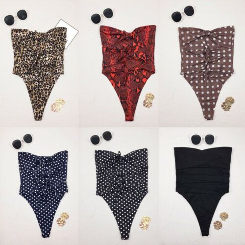 One Piece Women Bandage Bow Tie Push Up Bra Padded Strapless Swimsuit Bikini Bathing Suit