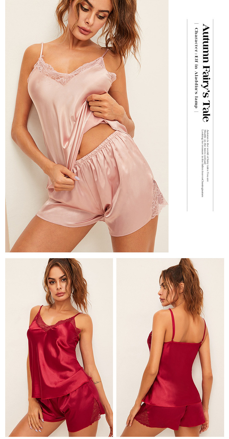 Pajamas Women Summer Thin V-neck Suspender Shorts Fashion Home Two-Piece Set Sexy Sling Dress