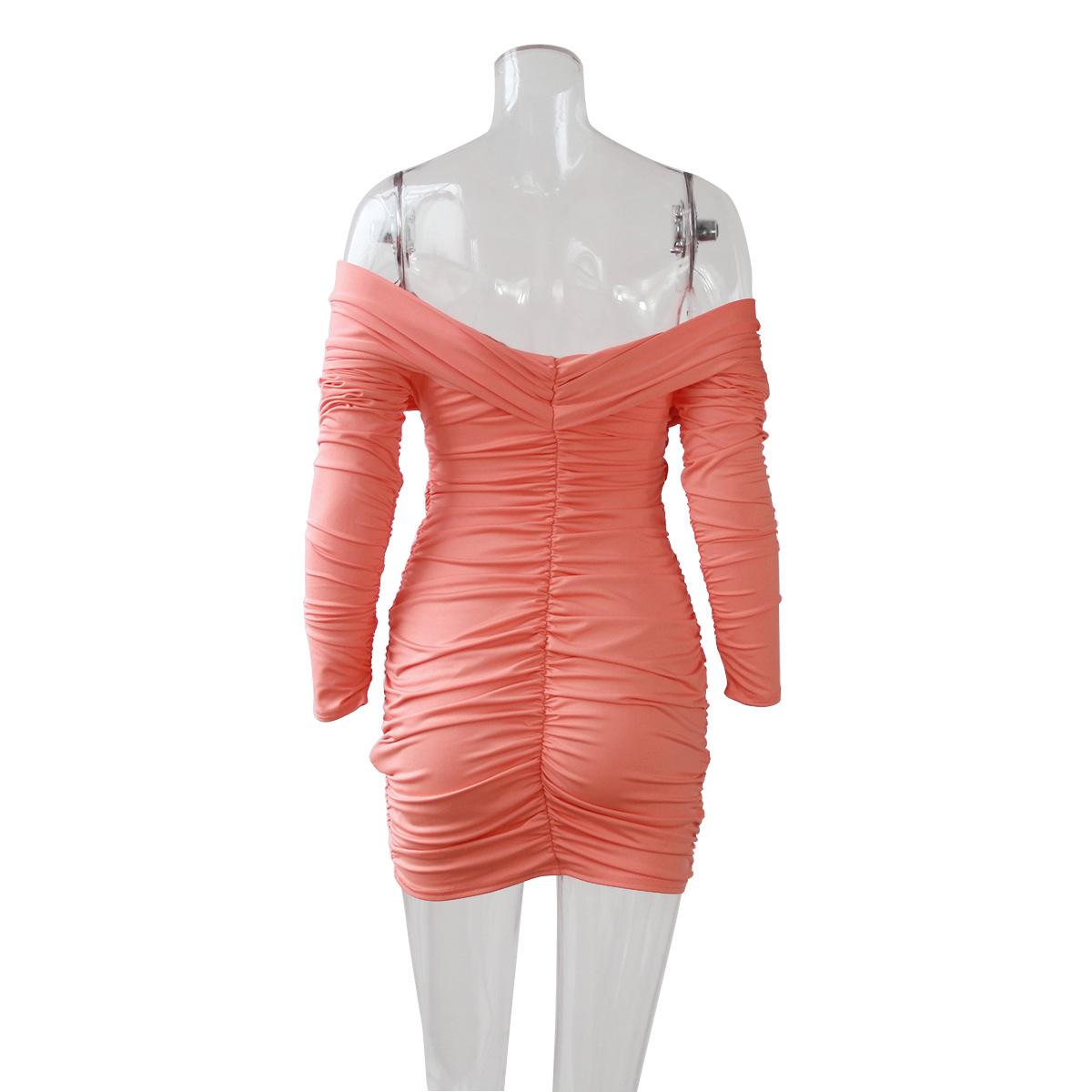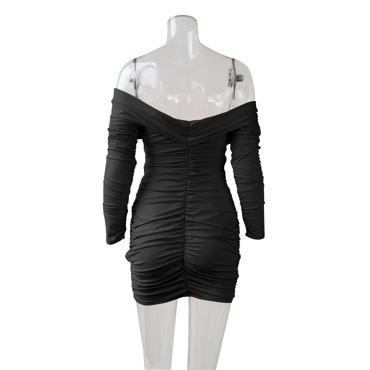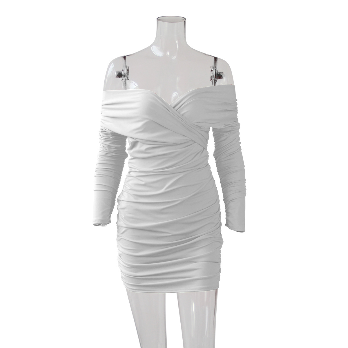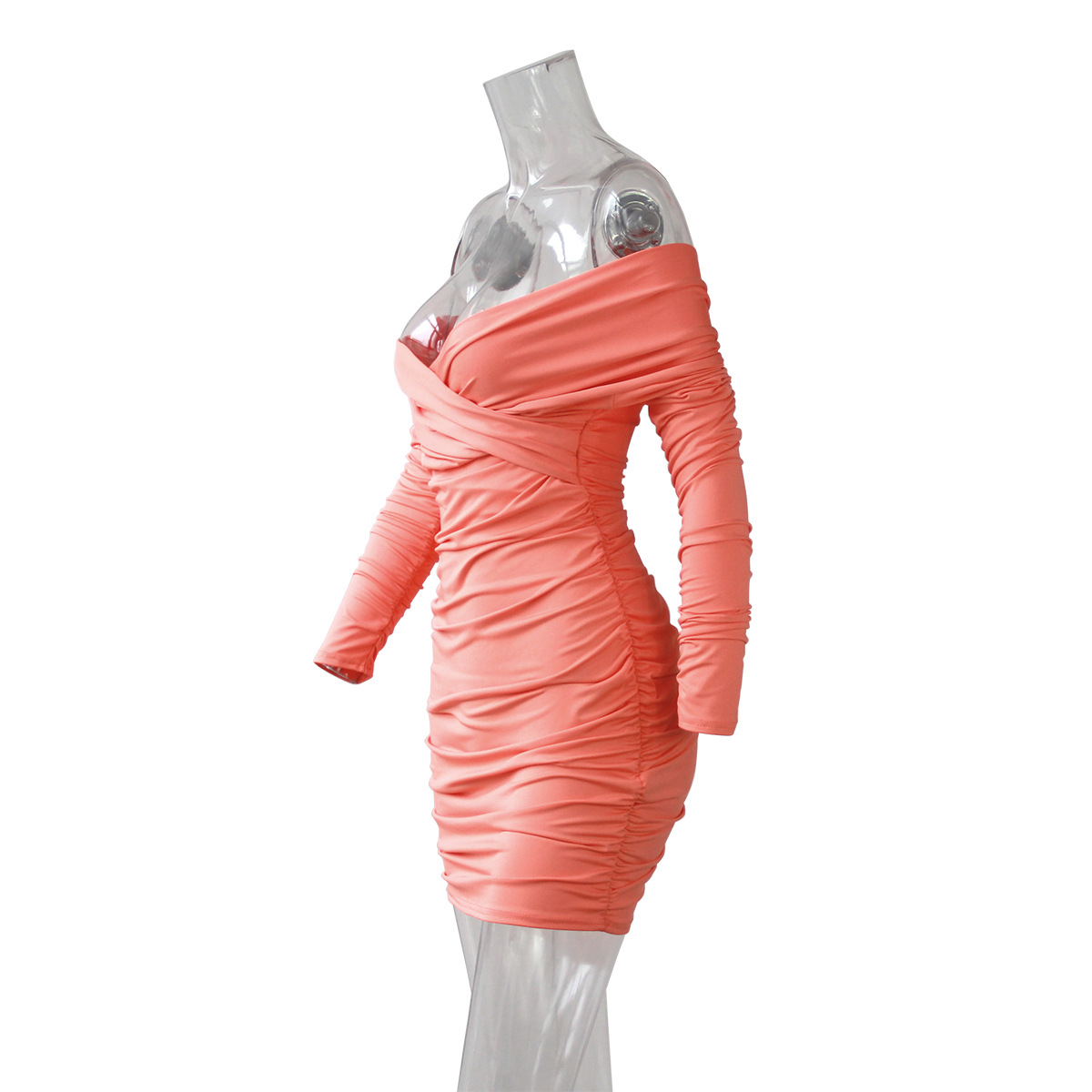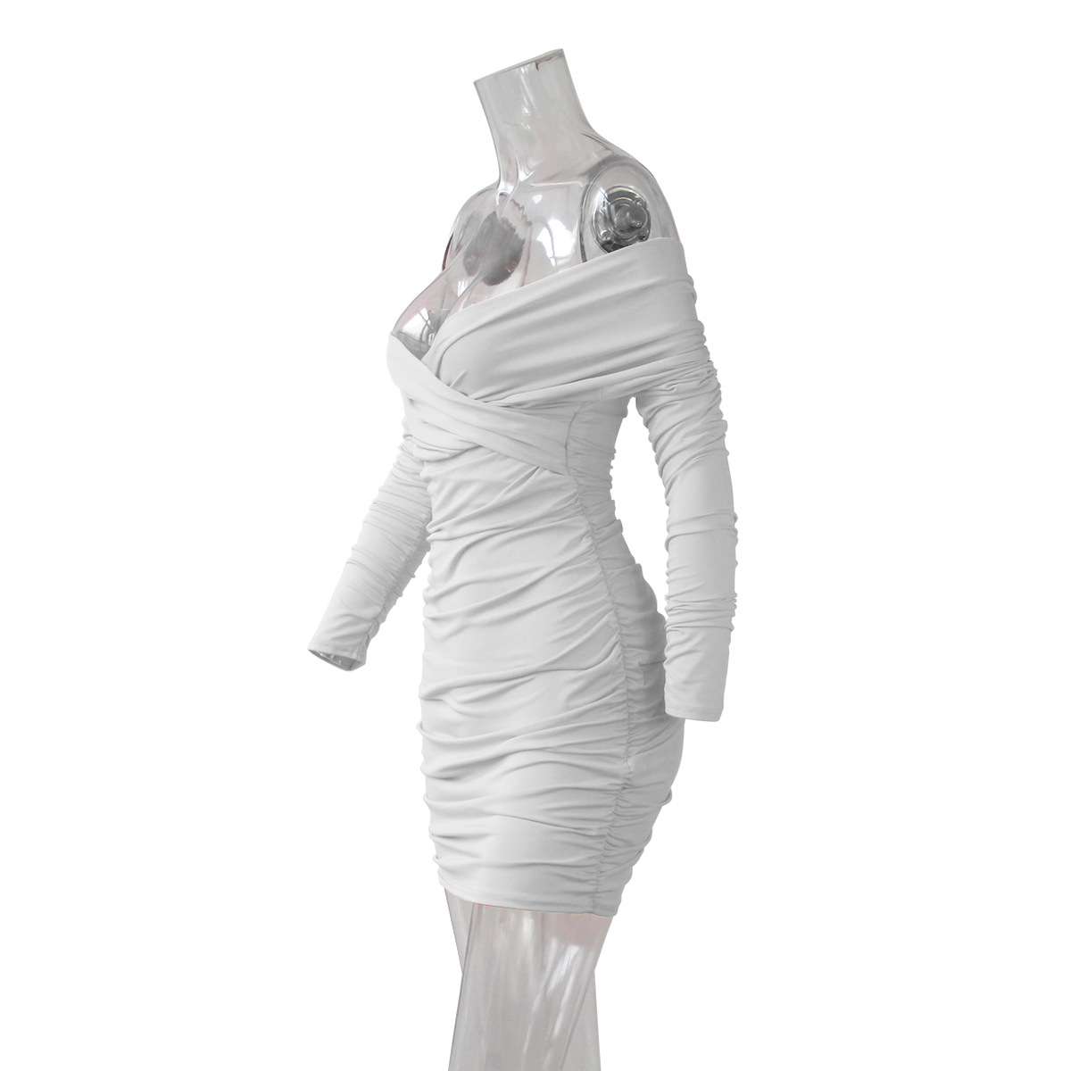 Sexy Off-the-shoulder Cross V-neck Tight Stitching Long Sleeve Women Dress