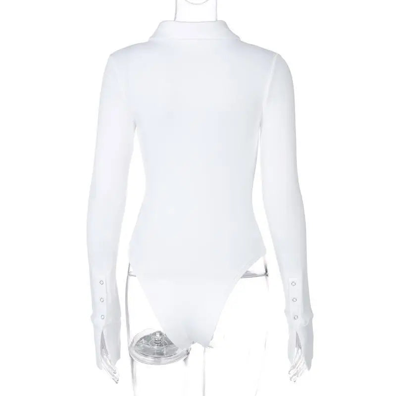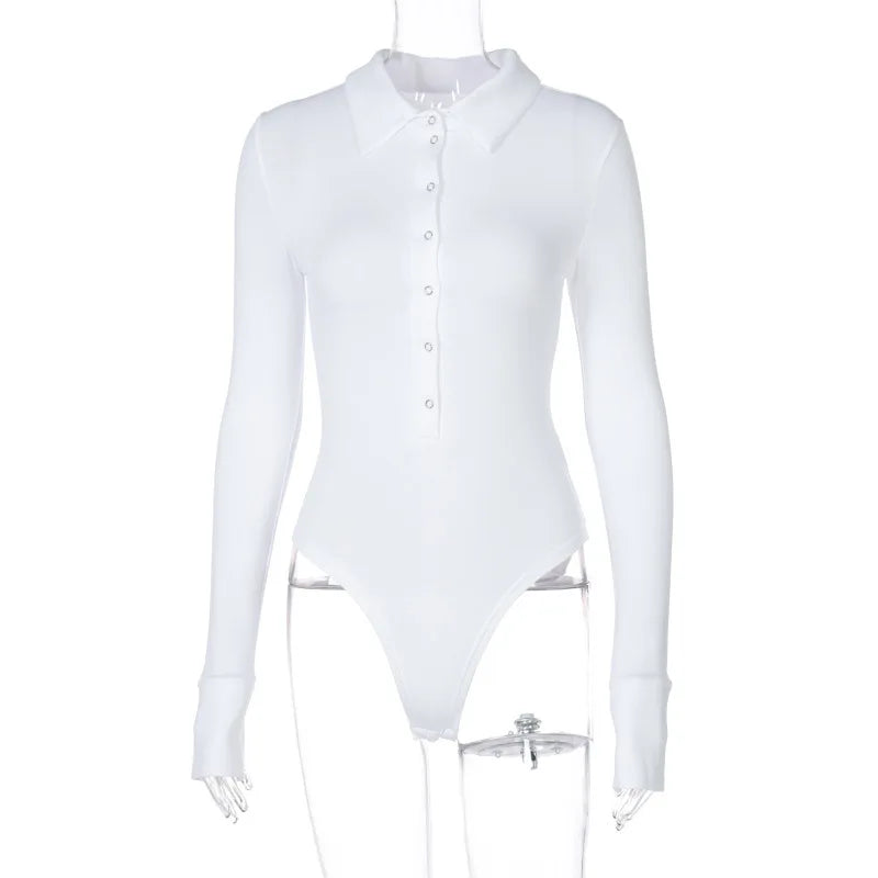 Solid Color Slim Retro Semi Cardigan Base Tops Women's Long Sleeve Casual Tights Jumpsuit Bodysuit Women Y2K Streetwear