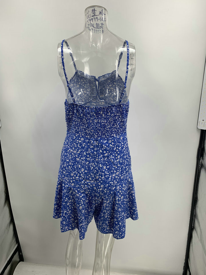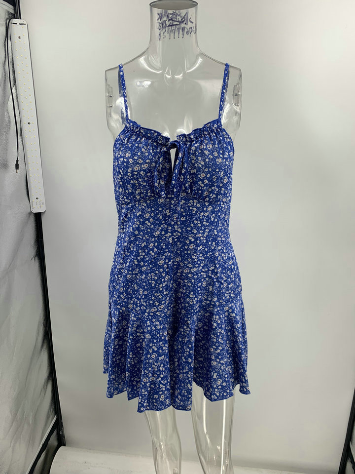 Spring and Summer New Casual Temperament Women Printed Strap Type V-neck Flounced Skirt Dress