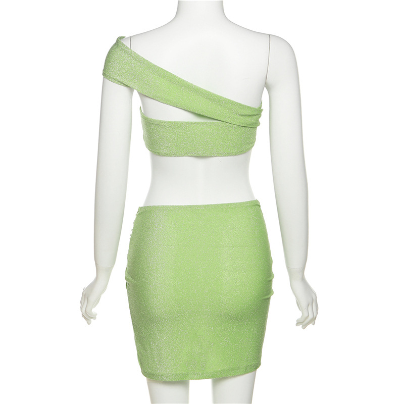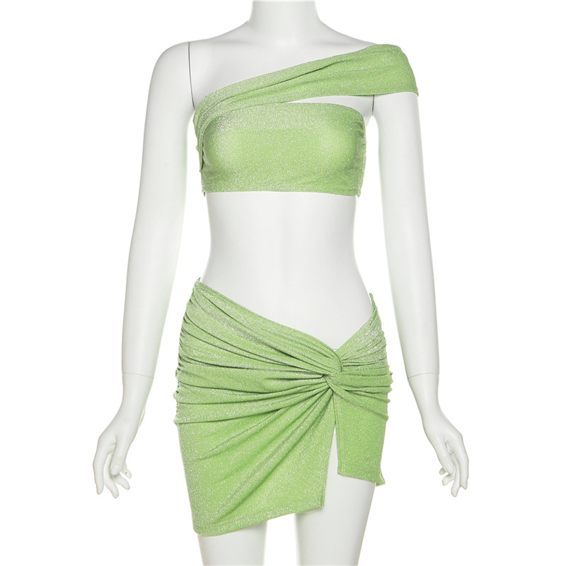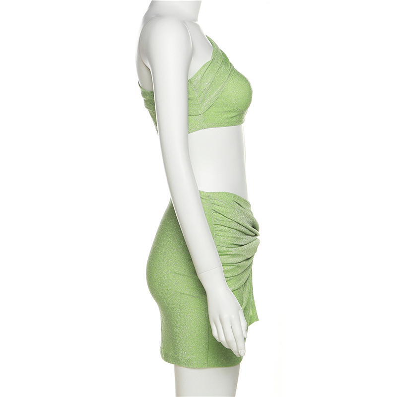 Spring Women Clothes Solid Color Backless Top High Waist Sheath Slim Pleated Skirt Set