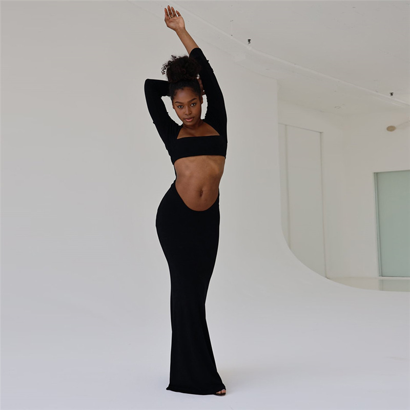 Style 2021 Fall Women Clothing New Fashion Sexy Hollow-out Tube Top Solid Color Sheath Slim Fit Dress